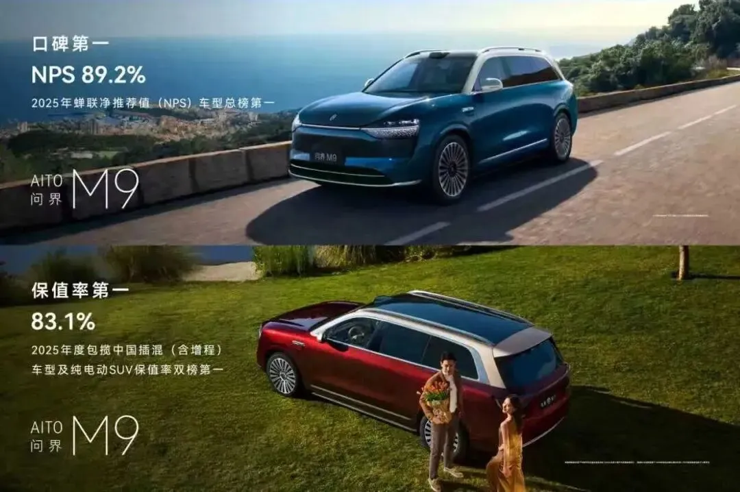 问界M9从2023年底上市,至今已有两年多点的时间,放到中国汽车市场的竞争速度里,已然算不上一台新车了。但是它依然可以拥有最新的华为乾崑智驾ADS 4.1能力,以及89.2%的NPS(净推荐值)和83.1%的保值率,这在2025年都是行业榜单的第一。
