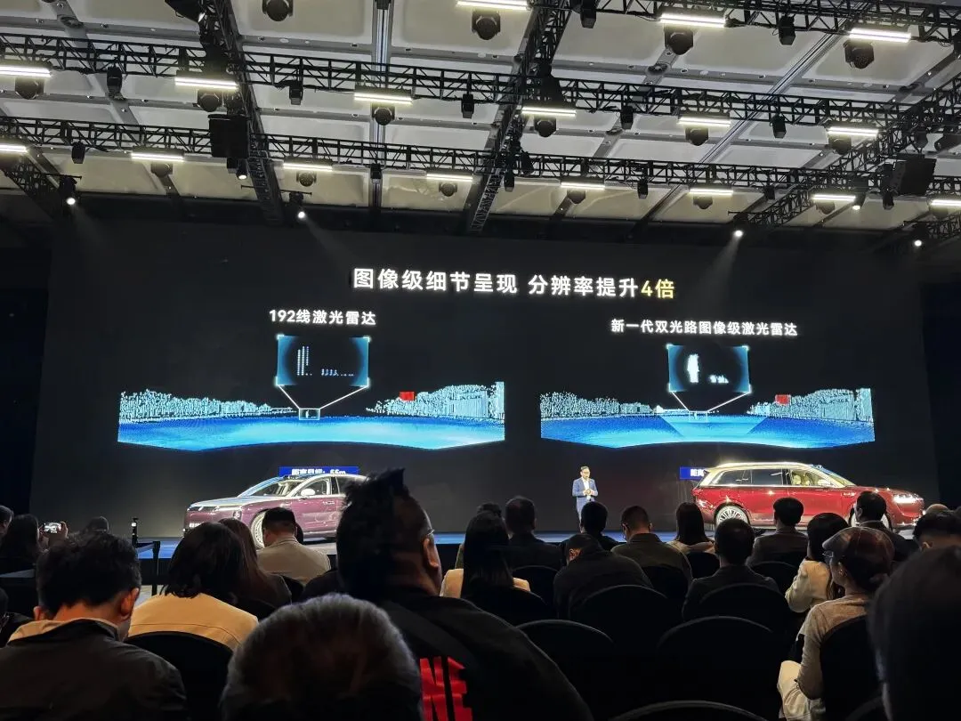 他表示,过去的激光雷达由于分辨率不足,只能生成由一个个点构成的「点云图」。而拥有 896 线的「新一代双光路图像级激光雷达」,则能够生成足以比肩图像的画面,于是叫「图像级激光雷达」。