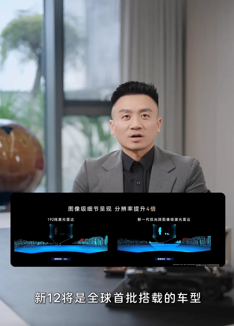 发布会后,阿维塔科技董事长王辉发布视频,宣布新款阿维塔 12,将成为全球首批搭载「新一代图像级激光雷达」的车型。