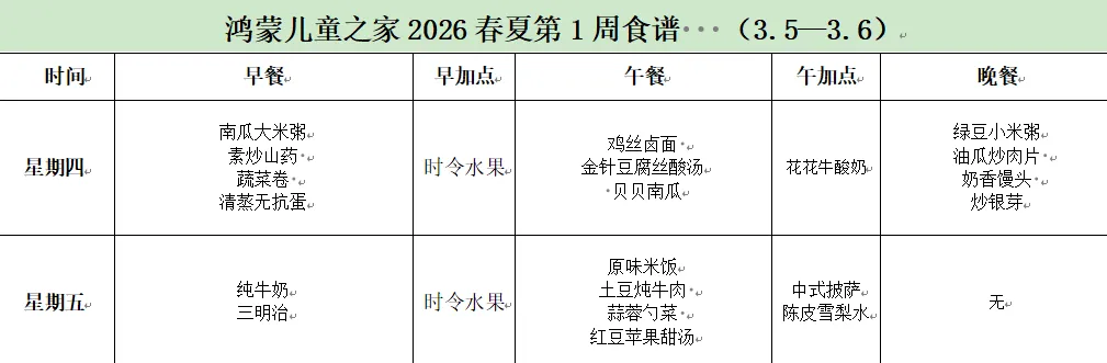 【食育食养】——鸿蒙儿童之家娃娃全天餐2026春夏第1周