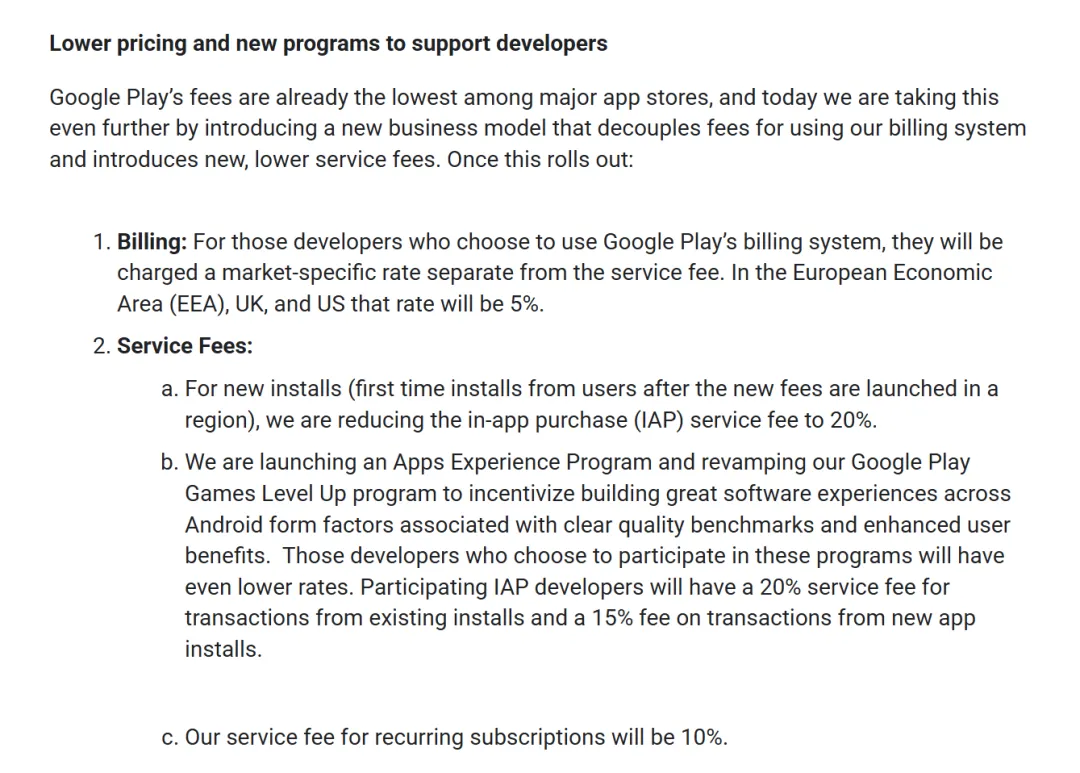 Google 将原本整体的“商店抽成”拆分为两部分: