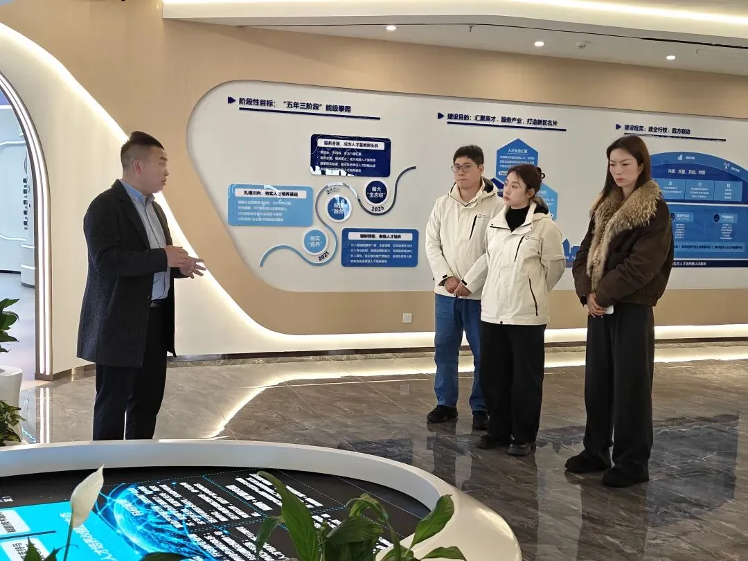 活动伊始,鸿蒙创新中心领导一行参观了鲲鹏人才基地展厅,详细了解了基地在人才培养、产教融合创新及生态伙伴合作等方面的实践成果。