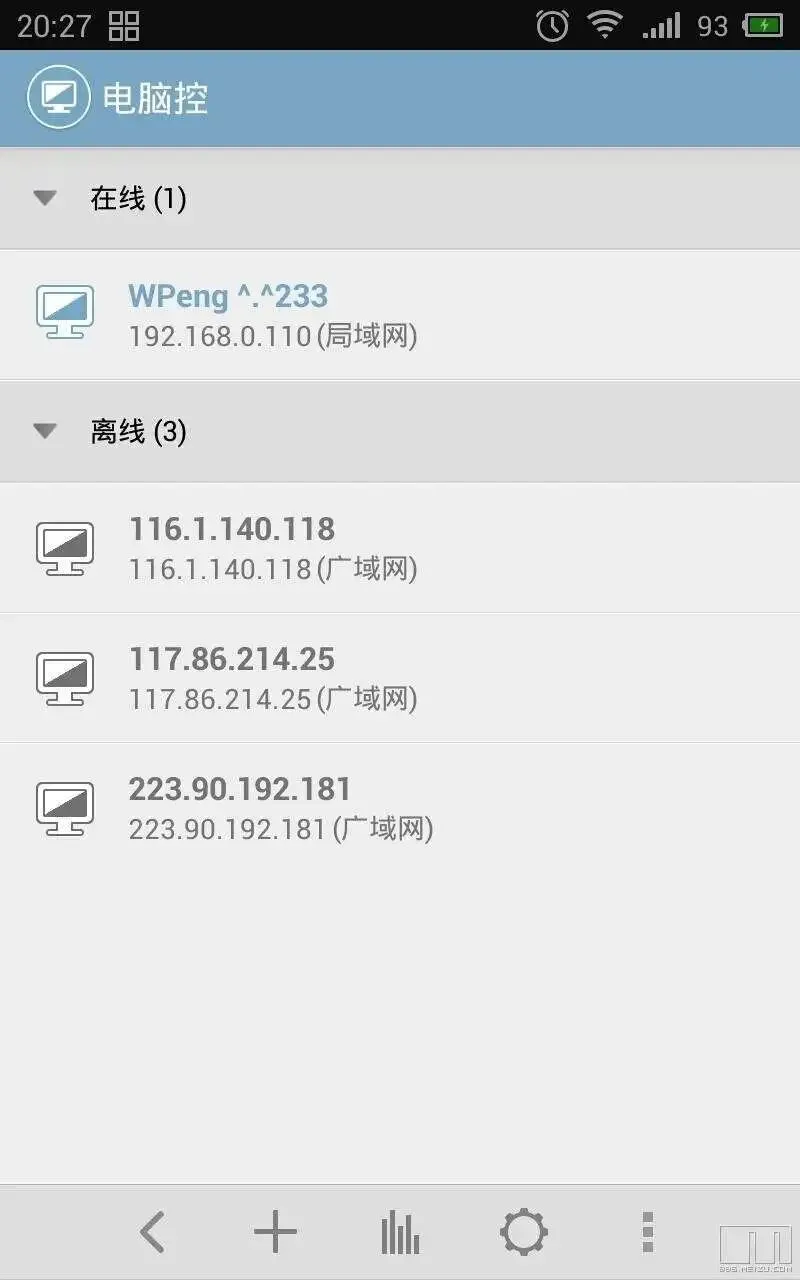 电脑控可以通过手机控制你的电脑!手机上会显示出电脑画面,并且可以操作鼠标键盘。这还不够,他还能帮你管理电脑上的文件,不管是电影也好,音乐也好,或是Word文档等等所有的文件,都可以下载到手机上。当然你也可以将手机上的文件上传到电脑上。赶快躺到床上用手机玩电脑去吧。