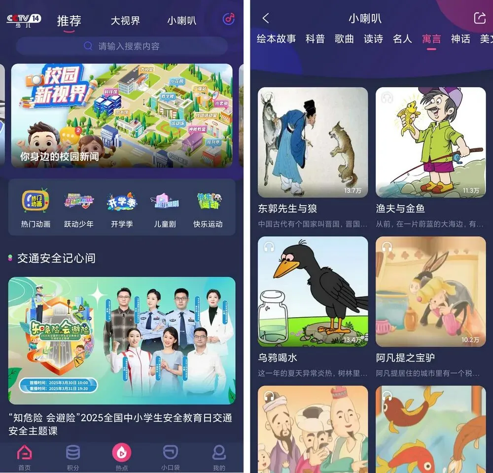 今天给大家推荐一款官方严选的少儿软件——央视少儿App,集合了教育、娱乐,互动于一体的数字成长空间,而且所有内容均免费开放,不论是看动画还是学知识,全程无广和弹窗。所有内容均通过严格审核,防止不良信息出现;无论是观看动画、听故事,还是参与互动游戏,孩子都能沉浸在纯粹的视听环境中。完全免费,无广告干扰