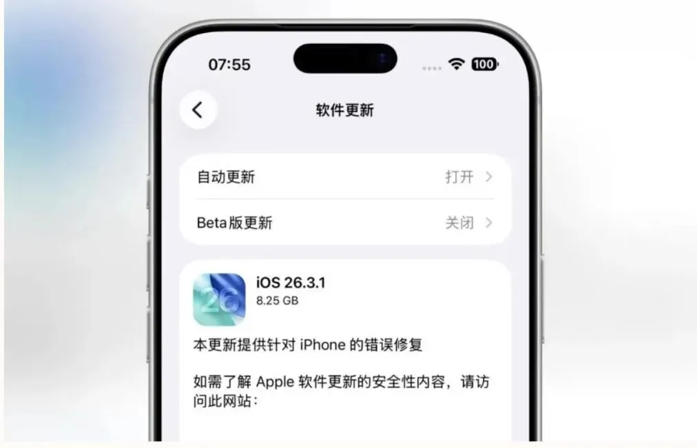 马年首次iOS更新来了!苹果今日正式推送iOS 26.3.1,版本号23D8133,主打修复、稳帧、降温、补安全漏洞,全网果粉都在更。