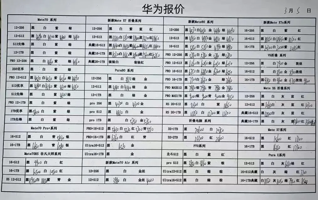 华为平板手表和三星报价不常更新