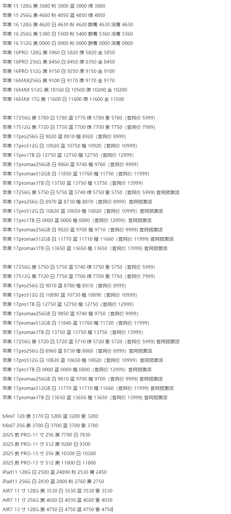 小米17PROmax 12+512黑5380白绿紫5350