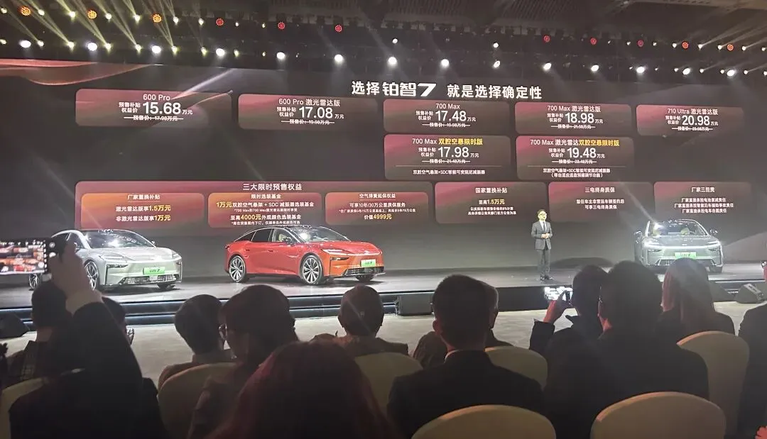 在当天,广汽丰田今年最重磅的新品、转型的旗舰之作铂智7正式开启预售,共推出5款配置车型,限时预售权益价为15.68万元—20.98万元。除了产品定价上的诚意外,行业普遍售价2万元左右的双腔空悬,预售期间中高配车型选配仅需5000元。这意味着,用户仅需19.48万元,就可以买齐鸿蒙座舱、带激光雷达的智驾、双腔空悬三大核心配置,这使得这款车型的价格竞争力突出。按照计划,铂智7将在本月内上市,届时上市价格可能还会有惊喜。