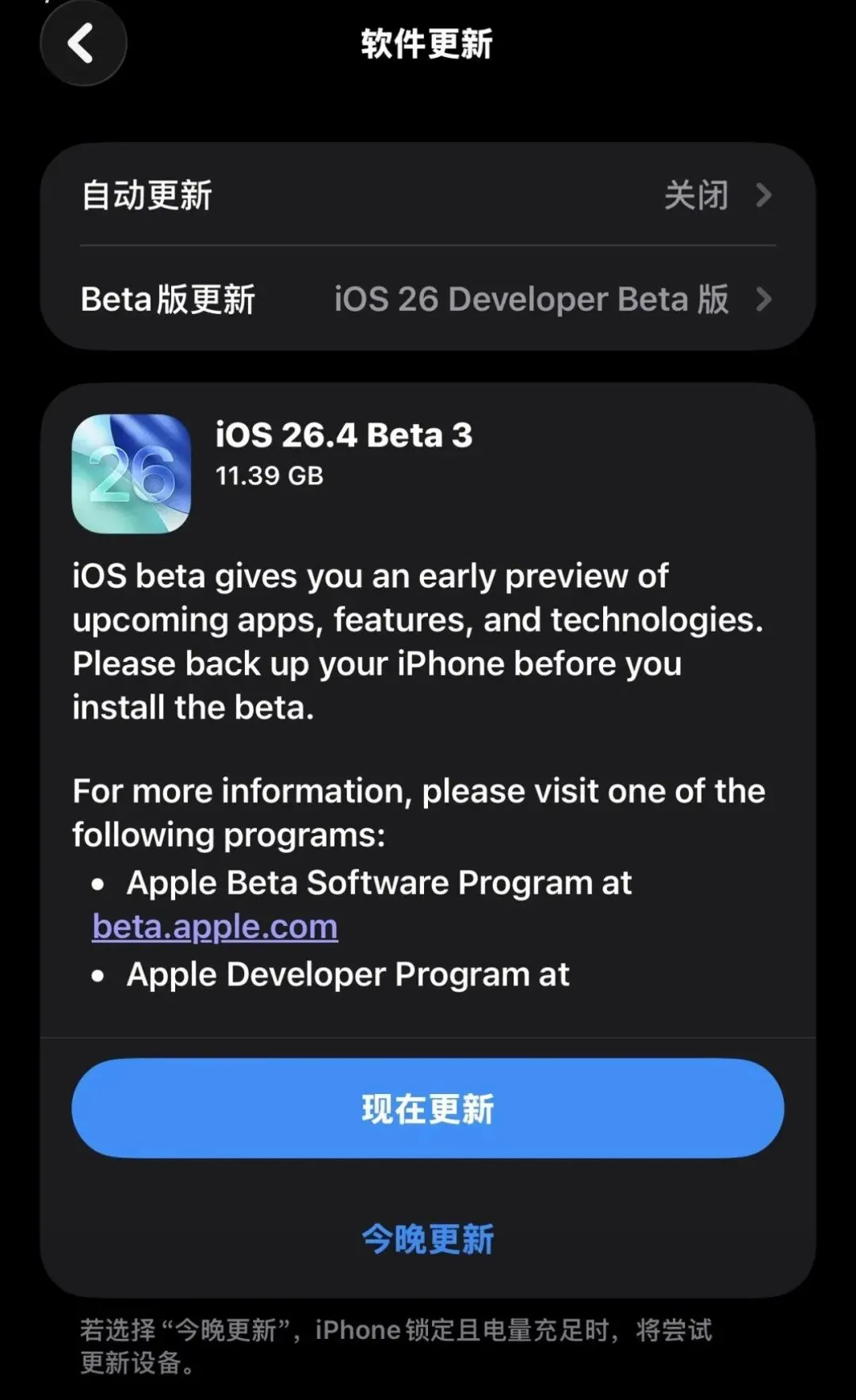 果粉们,iOS 26.4 Beta 3(也叫26.4.3)最近热度爆表,后台天天被问:到底比26.3省电吗?我的机型能不能升?