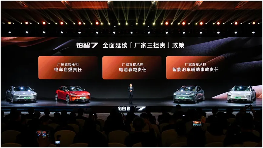 用车保障,从买到用,全程厂家兜底。铂智7全面延续“厂家三担责”——电车自燃、智能泊车事故、电池衰减,全部厂家担责。双腔空悬10年或30万公里超长质保。厂家直销保养套餐低至499元,全国600多家4S店通用。铂智7真正把安心贯穿用车全周期,兑现“全程无需操心”的承诺。