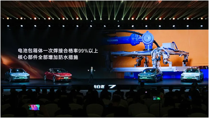 安全品质,看不见的地方也安全可靠。铂智7多项耐久试验超行业标准2倍:空悬测试904万次,行业普遍450万次;悬架耐久验证20万次,行业普遍10万次。电池安全挑战电芯锯切实验,不起火、不爆炸。整车高强度钢铝合金占比73%,最高强度2GPa。华为DriveONE电驱融入丰田安全要件,在设计阶段预设所有失效模式,将传动轴断裂点预设于电驱壳体内部,防止部件入侵乘员舱。门把手机电一体式设计,提前满足2027年新国标,任何时候,找得到、拉得开。