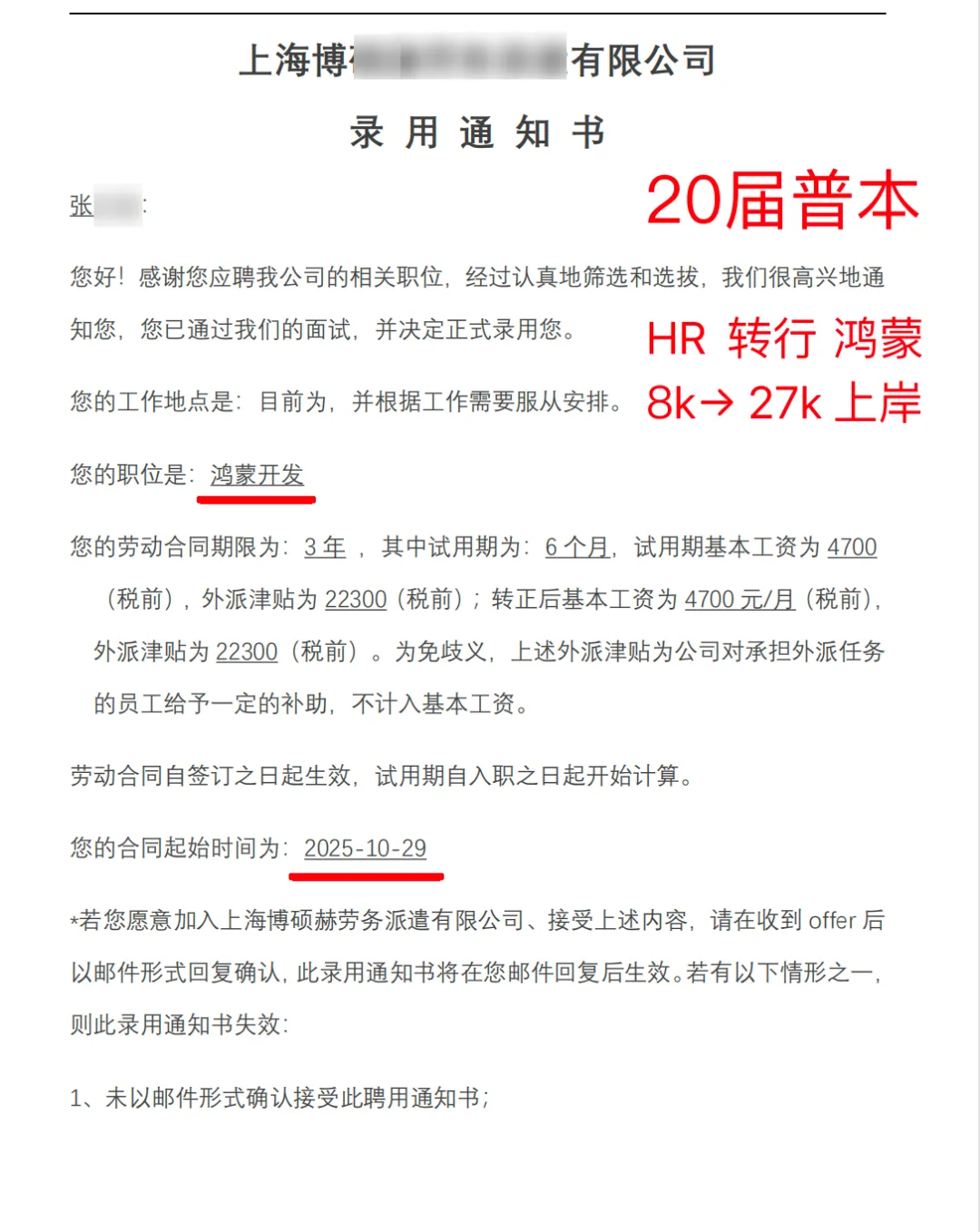 所有开发岗位中,鸿蒙开发是目前唯一明确可以接受统招大专的岗位。尤其是有开发经验的大专前端程序员,无缝衔接。