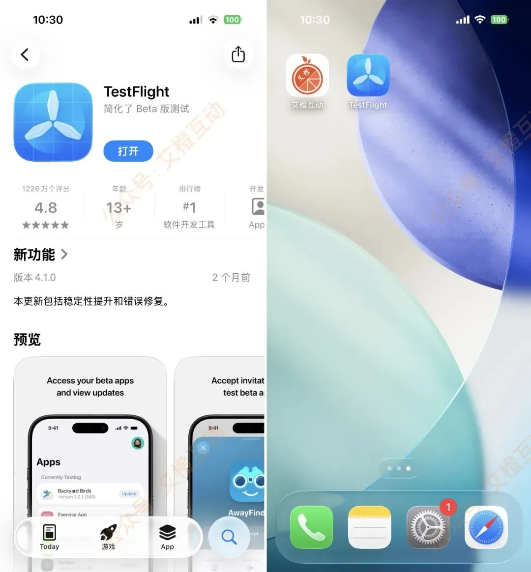 在 App Store 中搜索免费安装苹果应用测试平台 TestFlight。