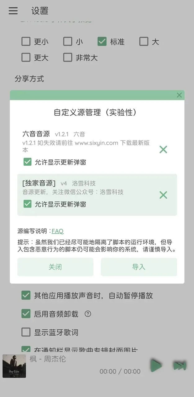 目前洛雪音乐只支持导入在线音源