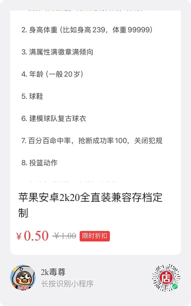 苹果安卓2k20全直装兼容存档定制