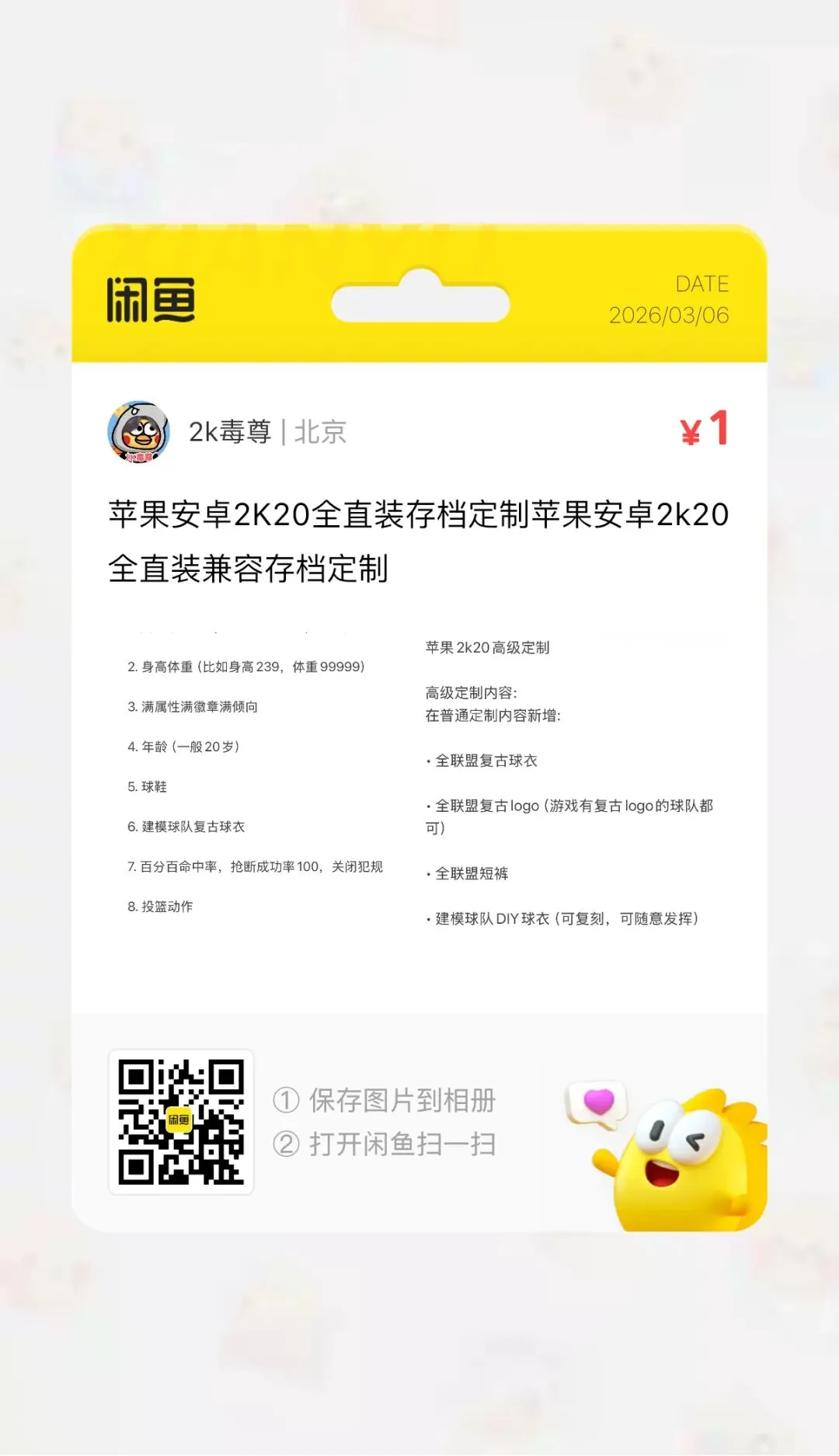 想玩的小伙伴用闲鱼扫描下方2