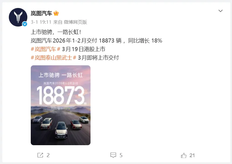 另外,3月19日,岚图将会在港股上市,终于也是走到这一步了。