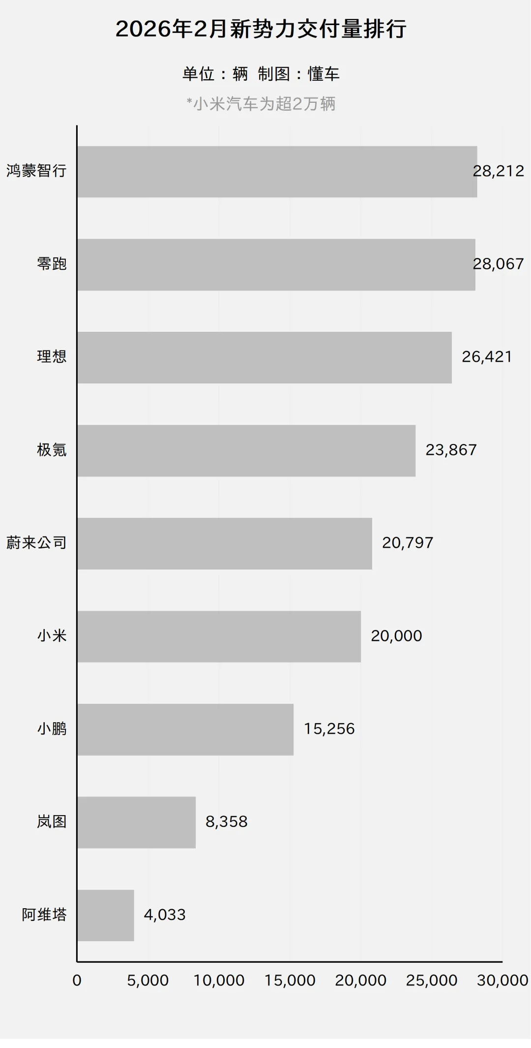 */完整的“2月新势力交付排行榜”、“1-2月新势力交付排行榜”“历史累计交付量排行榜”放在了文章最后。