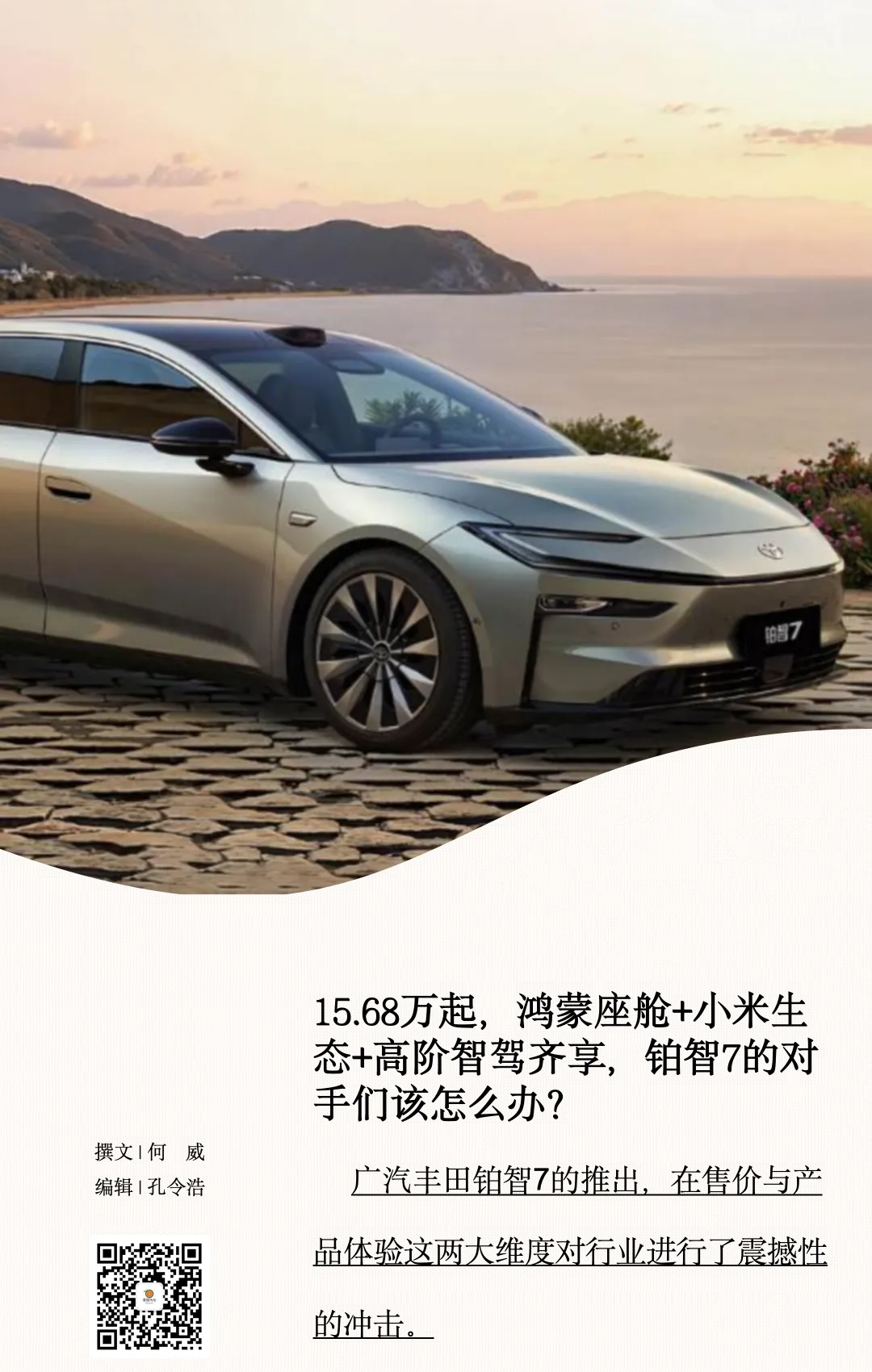 点评:广汽丰田铂智7的推出,除了在售价与产品体验这两大维度对行业进行了震撼性的冲击。更是从日常实际用车体验入手切中了用户痛点,以确定性让用户感受到了行业老牌车企的责任心以及对豪华的深刻理解——不给用户添麻烦。