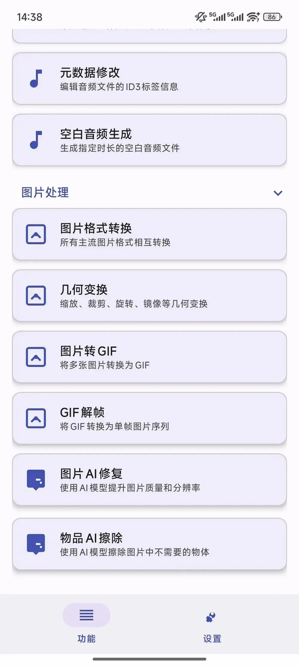 虽然现在大家手机相册自带的修图功能也不错,但Atool把图片处理集成进来主打的就是一个随取随用。它不仅能让你自由转换图片格式、搞定缩放旋转等几何调整,还塞进去了极其好用的AI修复黑科技。那些模糊的老旧照片一键就能还原清晰细节,如果照片里不小心拍到了路人或杂物,它也能帮你智能擦除,让画面干干净净。