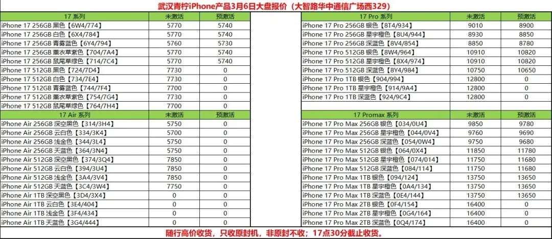 小米17PRO 12+512黑白4600绿4550紫4600