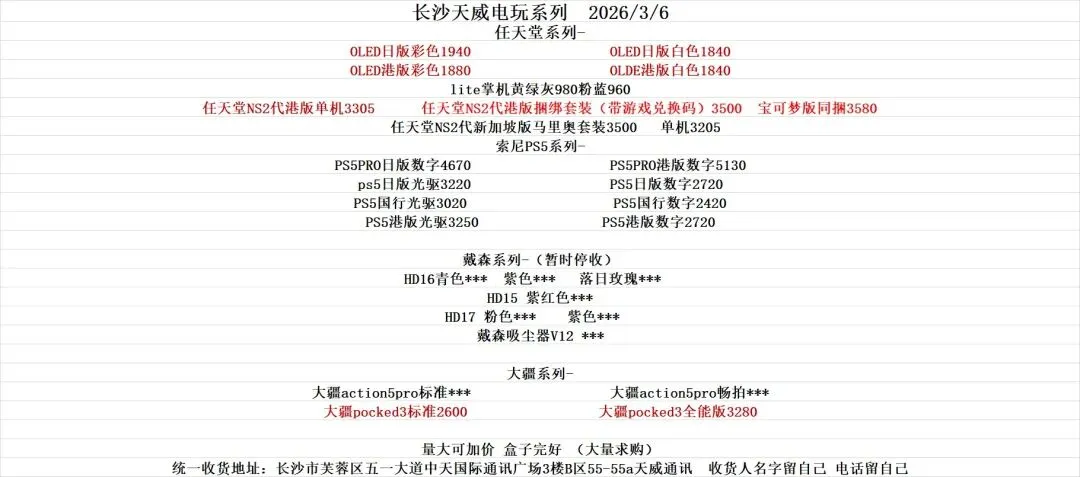 苹果安卓国产手机戴森任天堂长沙回收地址:湖南省长沙市芙蓉区五一大道中天国际通讯广场3楼b区55天威通讯
