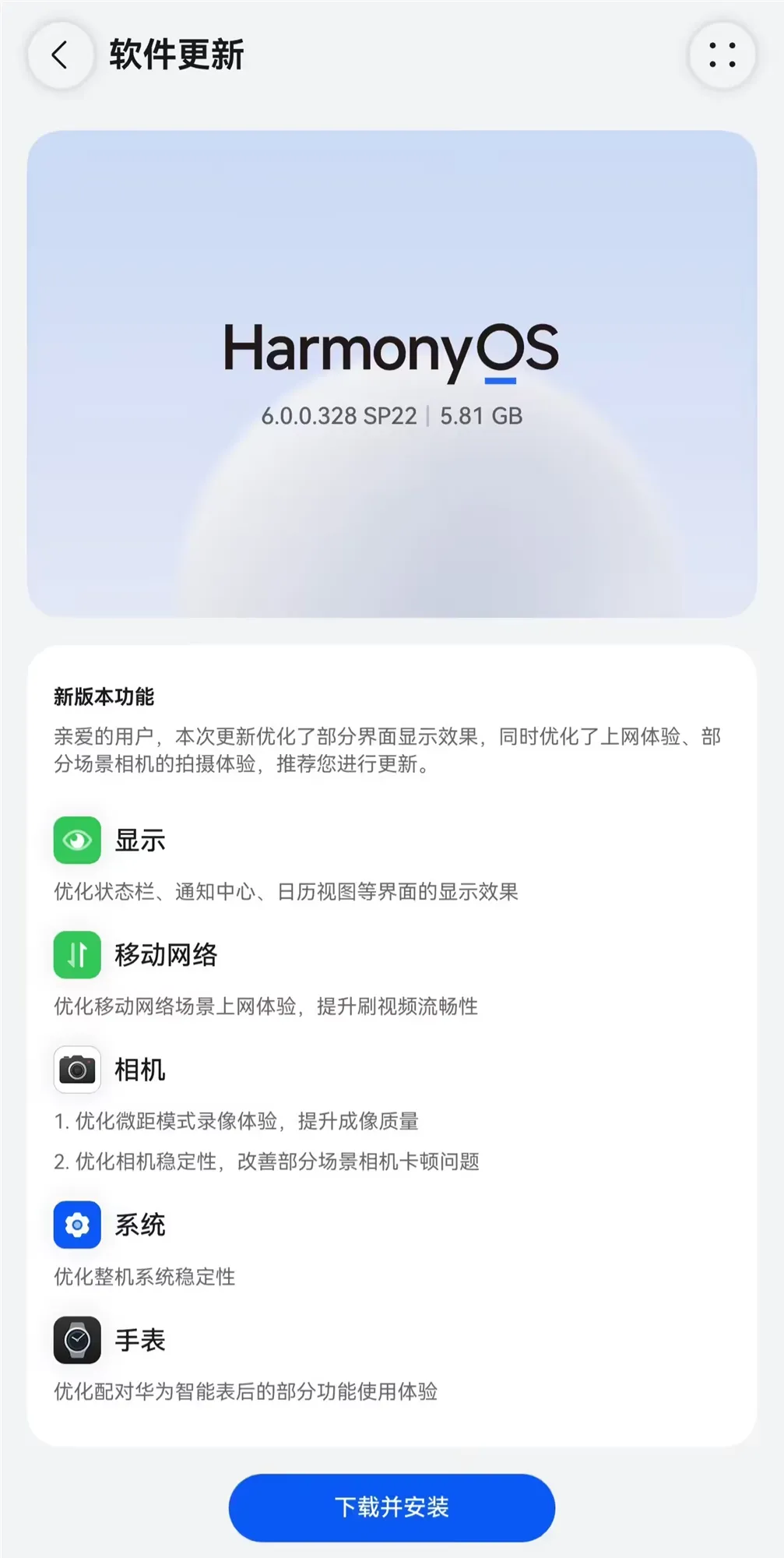 这次的版本号为6.0.0.328 SP22,系统包约11.49GB,这个体积放在手机系统更新里,属于动真格的量级,对于用户来说,体验也会很好。