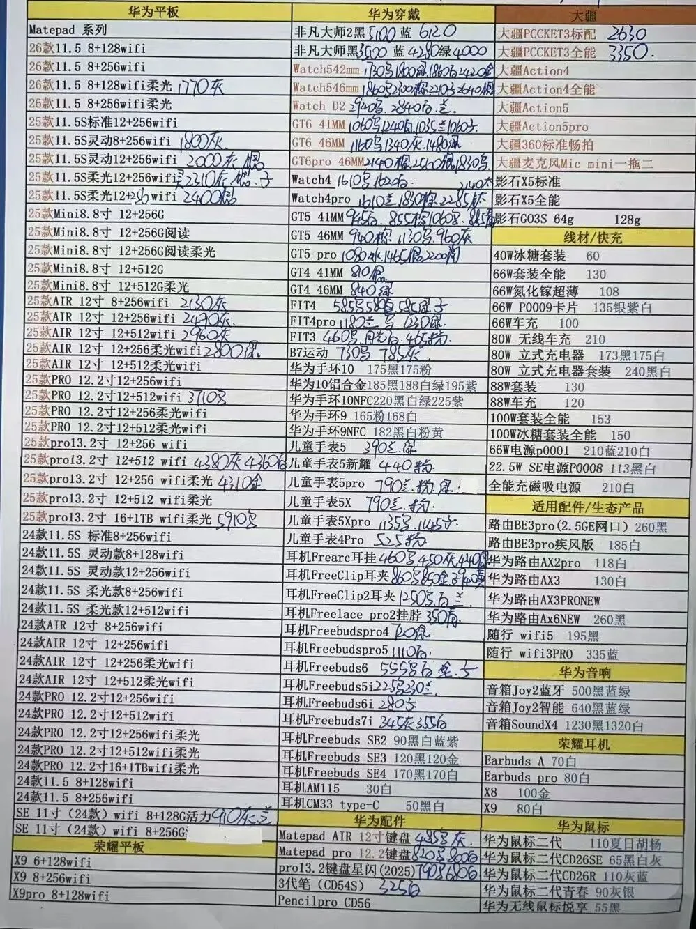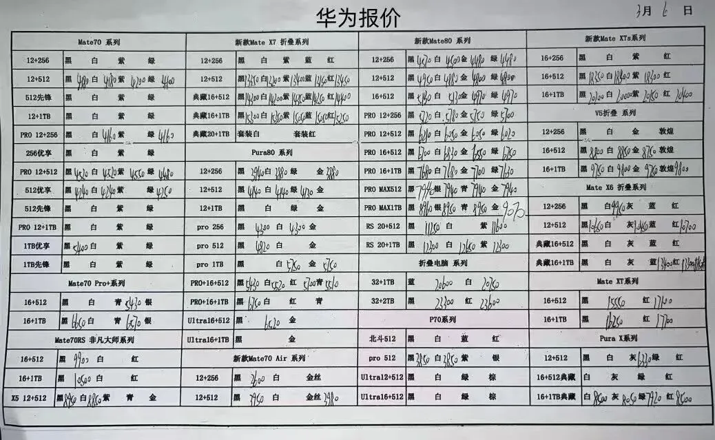 华为平板手表和三星报价不常更新