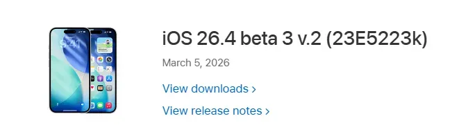 在3月6日凌晨时段,苹果发布 iOS 26.4 beta 3 内测系统,该系统与上一个beta3版本不同,这是修订版,疑似添加新设备测试,但这次官方命名为 iOS 26.4 beta 3 v.2 (23E5223k) 系统,特别有趣。