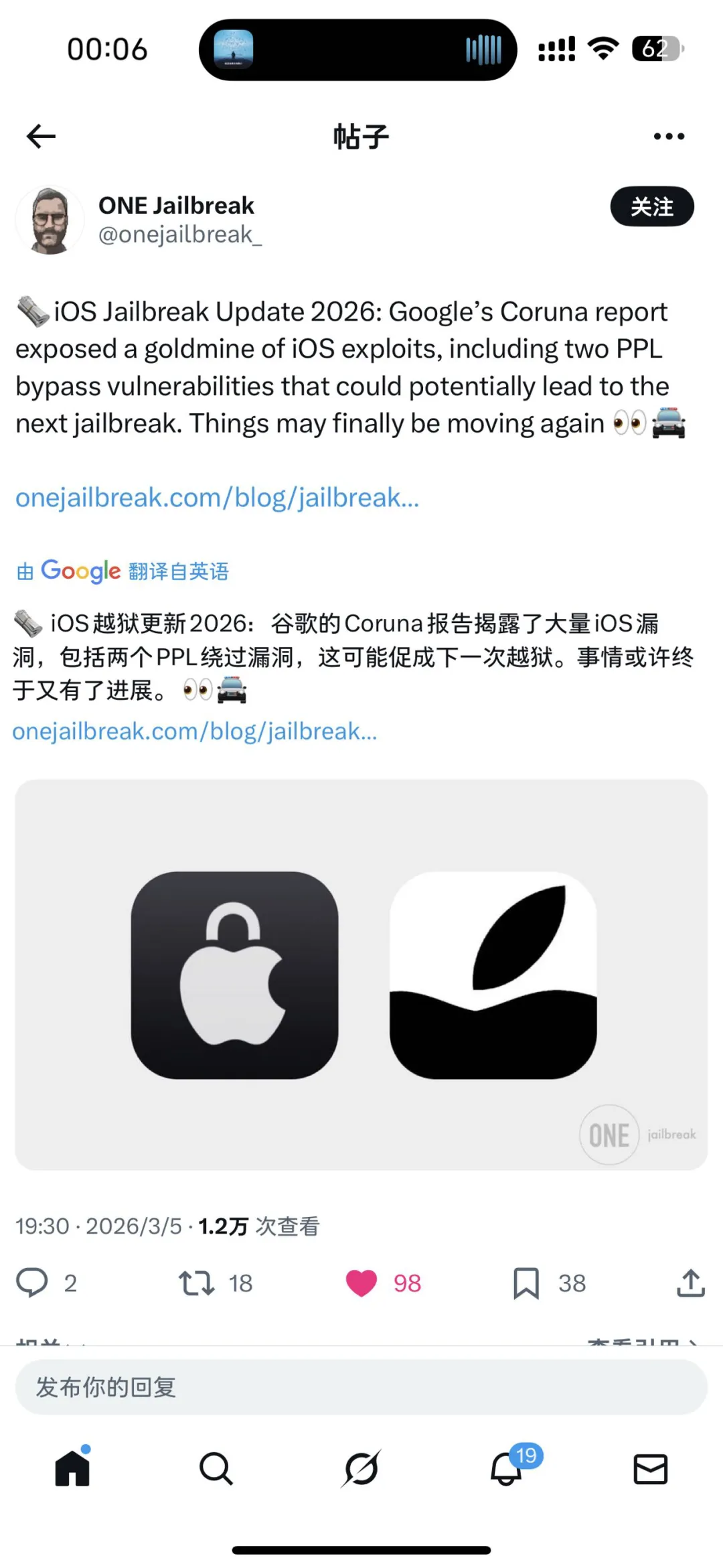 谷歌最新报告有PPL绕过漏洞,看来越狱也只是时间问题了