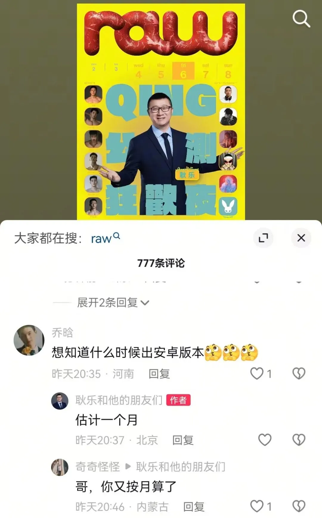 对于什么时候上新安卓版本,耿乐表示,估计会在一个月内推出,而网友也调侃到,又开始按月算时间了,毕竟此前的版本也推迟了很久!