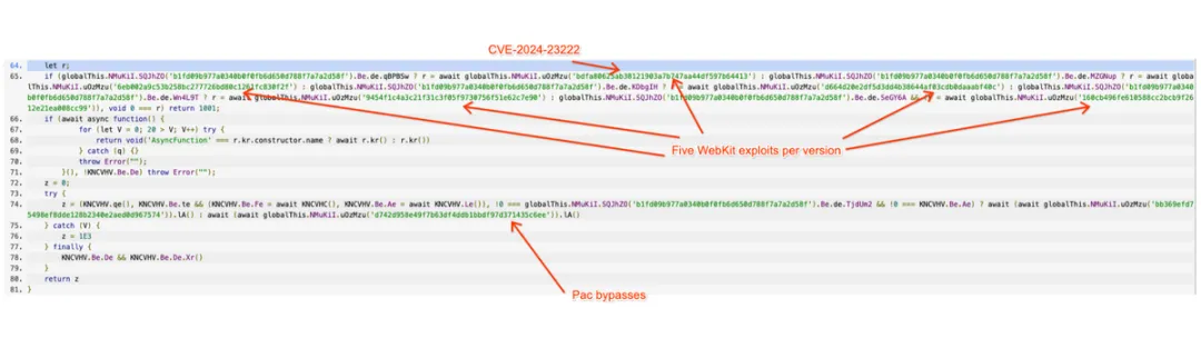 JavaScript代码图2:Coruna漏洞利用工具包的反混淆JavaScript代码