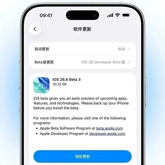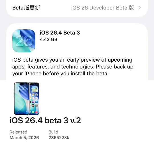在过去的几天,苹果才刚刚推送了iOS 26.4 Beta 3版本。但是到了今天的时候,出现了新变化。苹果突然紧急地追加推出了iOS 26.4 Beta 3版本的第二个版本。