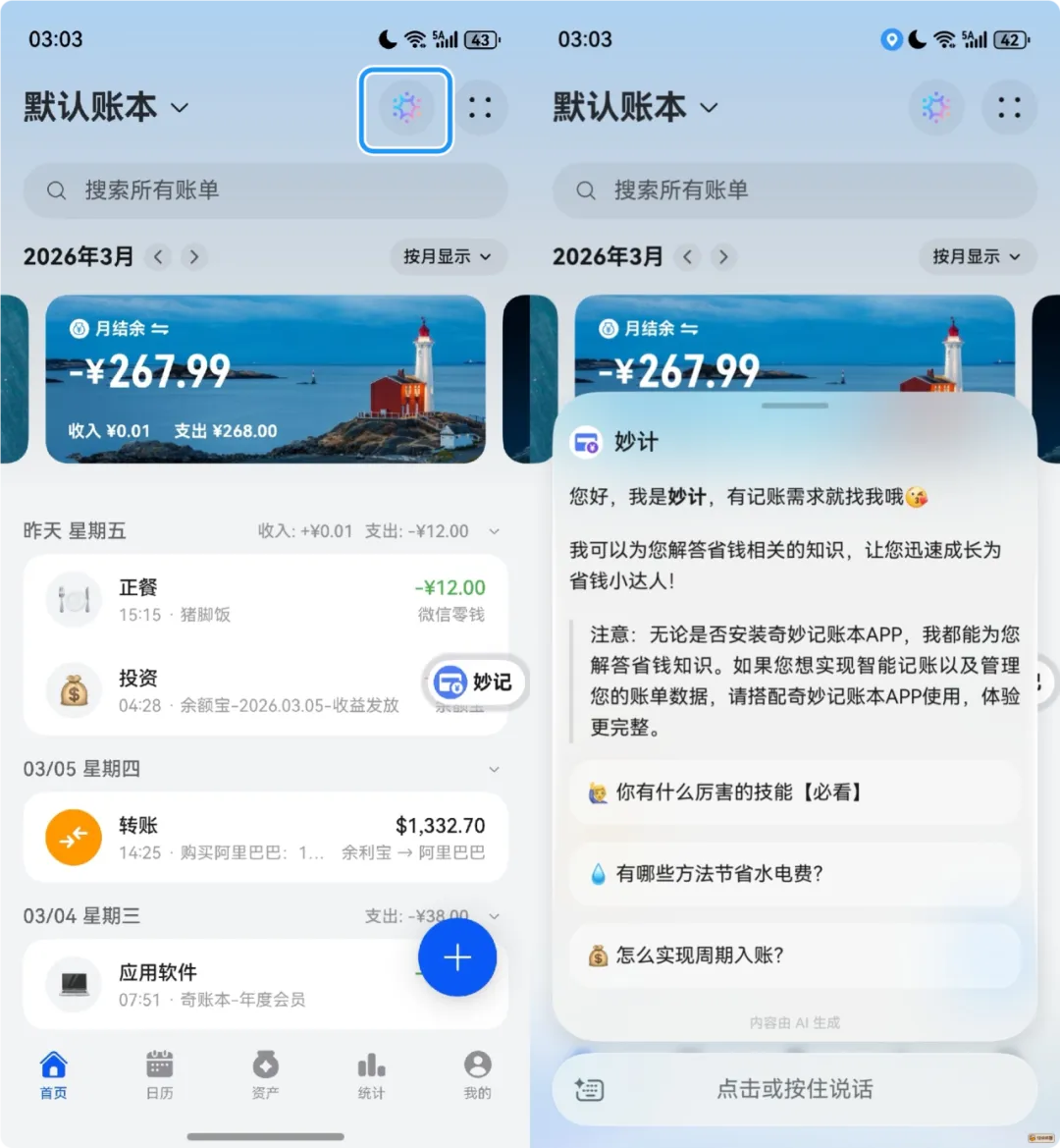 如果您在使用奇妙记账本应用时遇到问题,可以问我类似这样的问题: