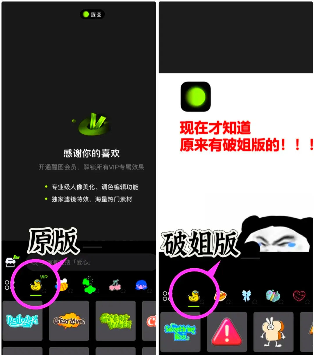 宝子们!小c 好久没搞“硬货”,今天直接上 醒图破解版 王炸——VIP 功能全解锁 ,安卓、iOS 双端能用,登录自己账号直接秒变永久 VIP ,修图再也不用看广告、抠抠搜搜等功能!