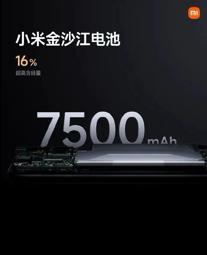 在机身厚度控制在8mm、重量219g的情况下,小米塞进了一块7500mAh的单电芯金沙江电池。