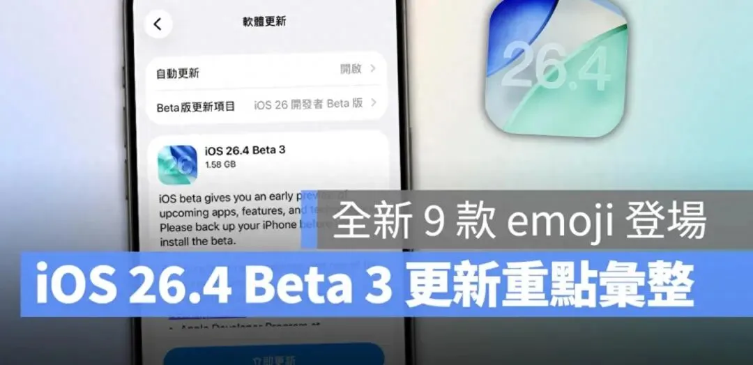 顺带一提,iOS 26.4 在Beta 1 的时候有加入不少新功能,而Beta 2 与今天发布的Beta 3 则都是聚焦在细节调整与稳定性改进;所以若你想知道iOS 26.4 有哪些更新亮点,可以回头参考我们之前分享的iOS 26.4 Beta 1 更新内容汇整。