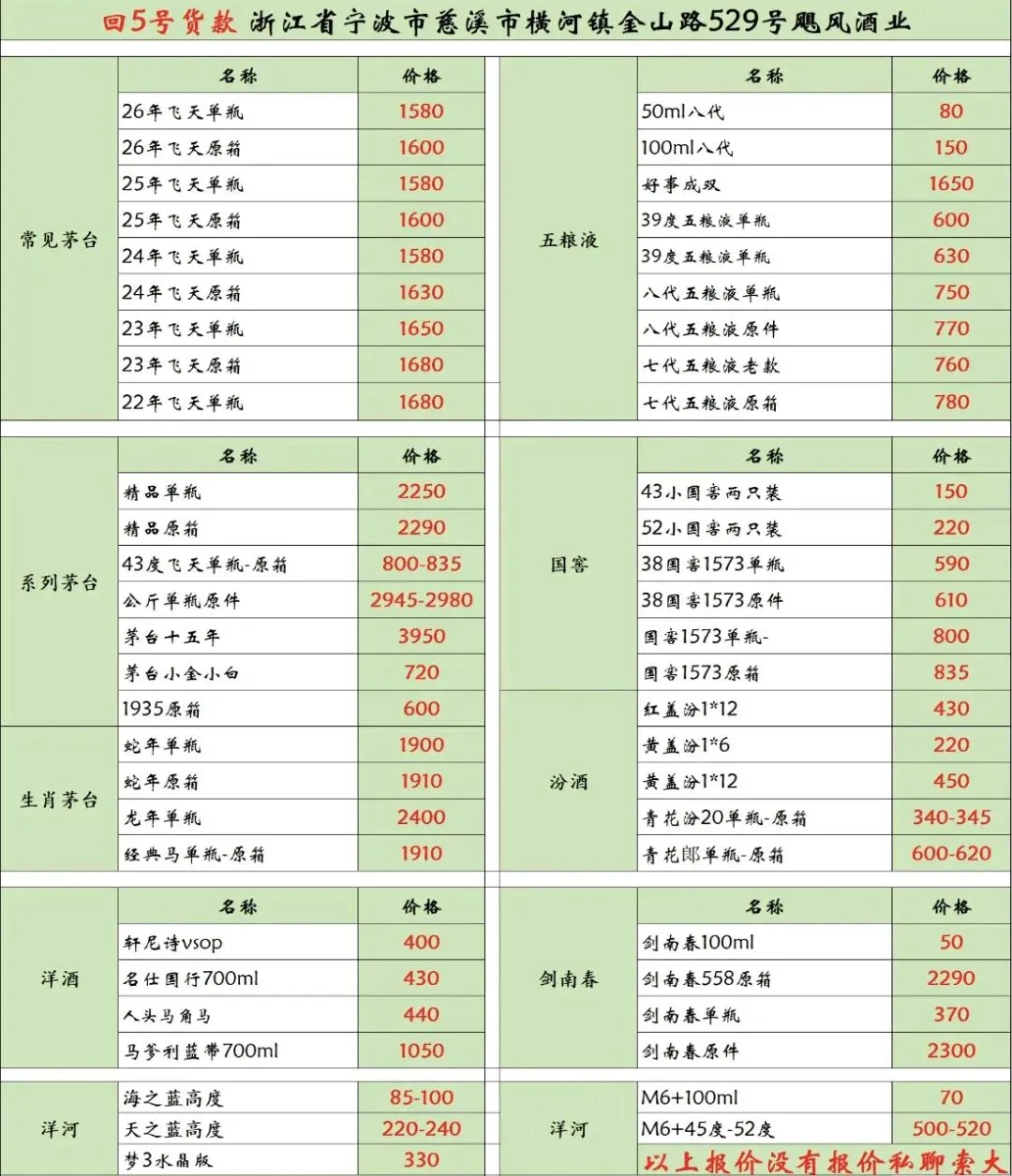 行情-5结账能直接出给索大,就直接联系索大出货!微信公众号,宁波飓风酒水