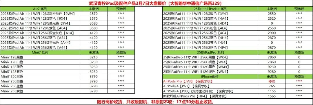 苹果手机平板到货邮寄武汉地址:湖北省武汉市江岸区大智路华中通信广场西329室W329