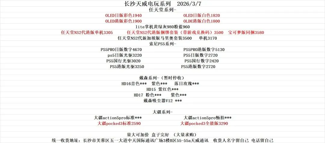 苹果安卓国产手机戴森任天堂长沙回收地址:湖南省长沙市芙蓉区五一大道中天国际通讯广场3楼b区55天威通讯