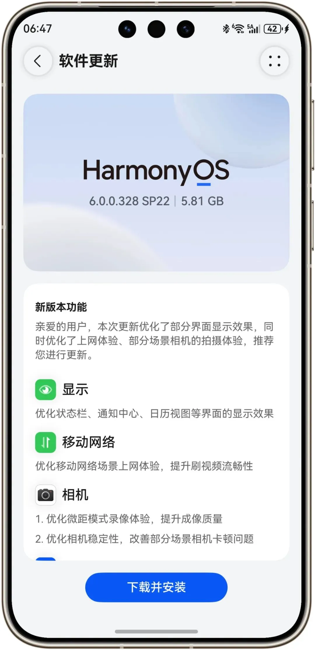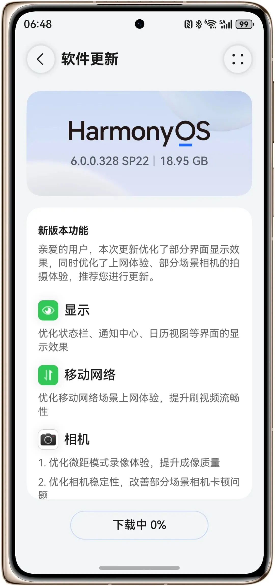 优化移动网络场景上网体验,提升刷视频流畅性;优化微距模式录像体验,提升成像质量;优化相机稳定性,改善部分场景相机卡顿问题。