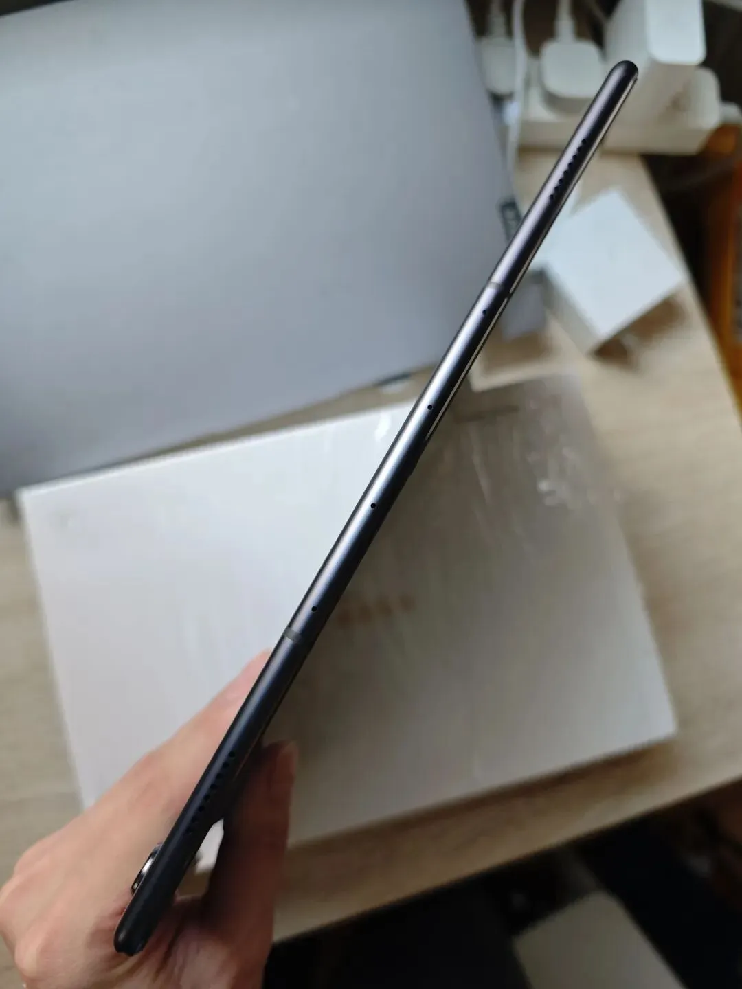 8.4英寸:206.4×125.2×7.4mm,约320g,单手持握舒适 。