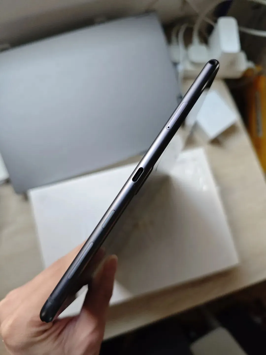 Type-C、3.5mm耳机孔、Nano-SIM/TF二合一卡槽、音量键、电源键集中于一侧,按键反馈清晰。