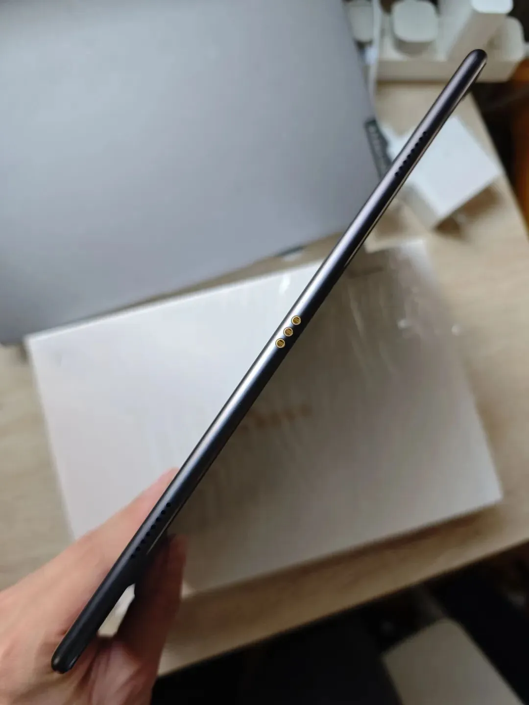 铝合金机身,香槟金/银钻灰,背部磨砂,侧边圆润收弧,边缘做了倒角处理。10.8英寸版后置摄像头有轻微凸起。
