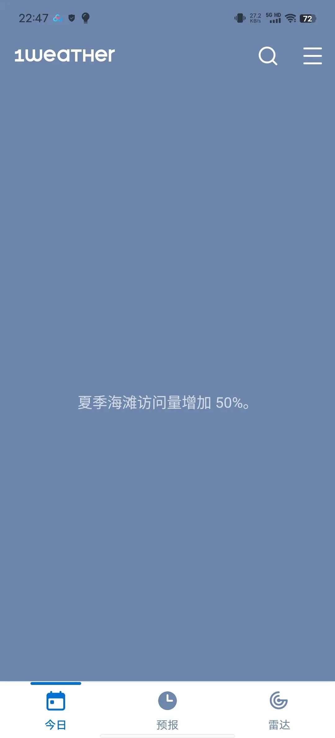 77.7MB的安装包小巧不占内存,安卓手机轻松安装,运行流畅不卡顿,全程无乱七八糟的弹窗广告、无捆绑插件,没有花里胡哨的无用功能,主打一个简洁高效,打开就能快速get关键天气信息,老人小孩都能轻松看懂。