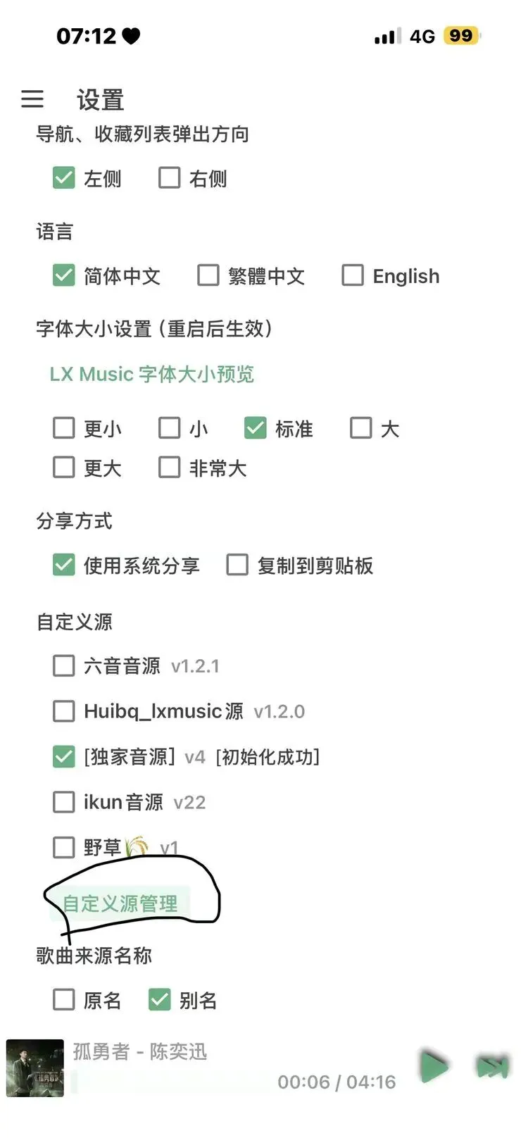 点击自定义音源,添加音源