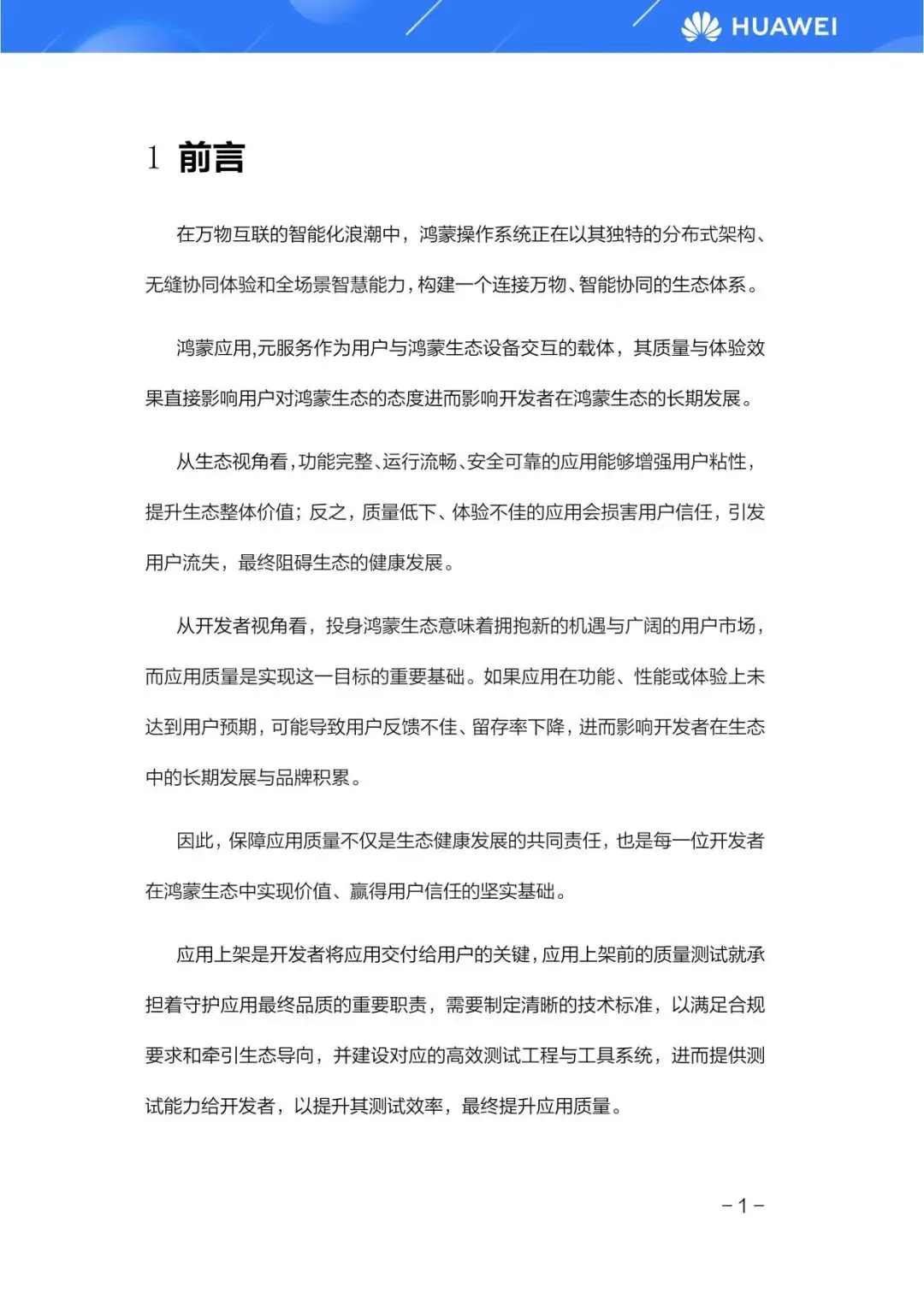 在万物互联的智能化时代,鸿蒙操作系统正以其分布式架构和全场景智慧能力,构建一个连接万物的生态体系。应用与元服务作为用户与鸿蒙生态交互的核心载体,其质量直接影响用户体验和生态健康发展。为此,华为终端有限公司正式发布《鸿蒙应用与元服务上架质量测试白皮书》,旨在为开发者提供清晰、系统的质量测试指引,共同打造高品质的鸿蒙应用生态。