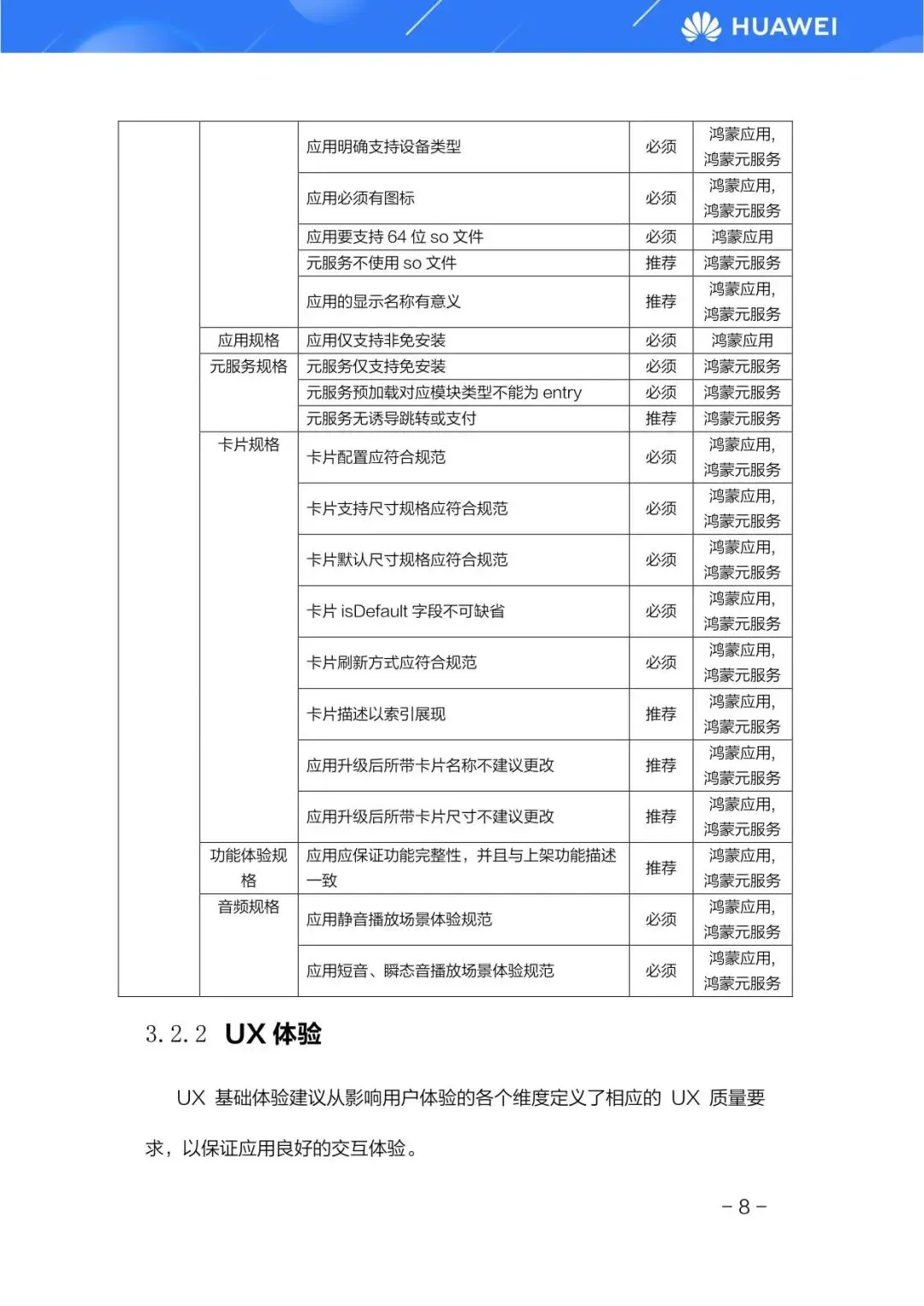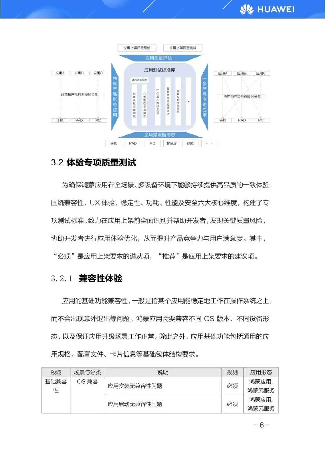 其次是体验专项质量测试,覆盖兼容性、UX体验、稳定性、功耗、性能及安全六大核心维度。白皮书对每一项都列出了详细的“必须”遵从项和“推荐”建议项。例如,在兼容性方面,要求应用必须兼容不同OS版本和设备形态,升级后需保证历史数据继承。在UX体验方面,对界面布局、手势操作、色彩对比度、文字大小、动效时长等均有明确规范,以确保应用交互友好、视觉舒适。最后是鸿蒙特性质量测试,重点验证应用是否符合鸿蒙生态规则并充分利用了鸿蒙的创新特性,如分布式能力、原子化服务等,这是鸿蒙应用区别于其他平台应用的独特价值所在。