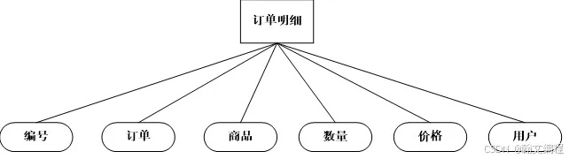 订单明细信息实体,主要包括订单明细编号,订单,商品,数量,价格,用户 等信息实体。如图4.5所示: