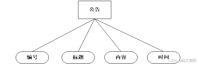 公告信息实体,主要包括公告编号,标题,内容,时间 等信息实体。如图4.6所示: